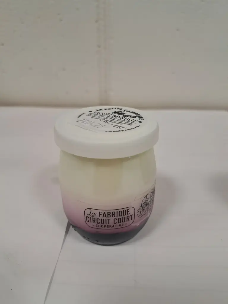 Ingrédients : lait entier de chèvre pasteurisé, préparation à base de fruits (15 %) : saccharose, myrtille 15 %, eau, arôme naturel, épaississant (pectines, carraghénanens), conservateur : sorbate de potassium).